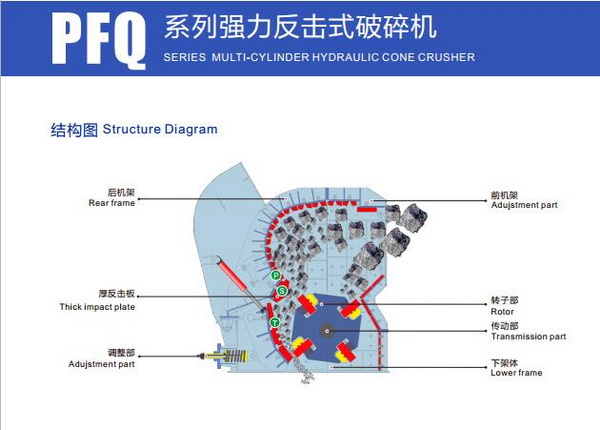 1.該機(jī)結(jié)構(gòu)設(shè)計(jì)獨(dú)特,有高大渦旋破碎腔和P、S、T三段破碎區(qū),使破碎效率更高,產(chǎn)能更大。